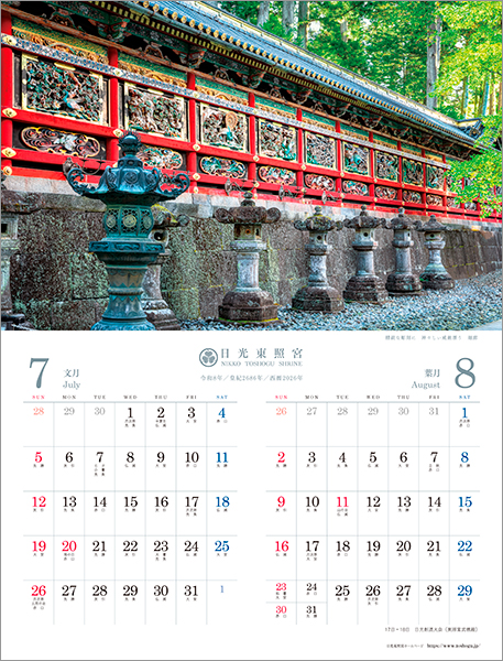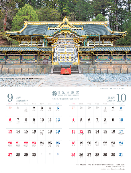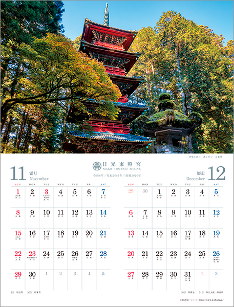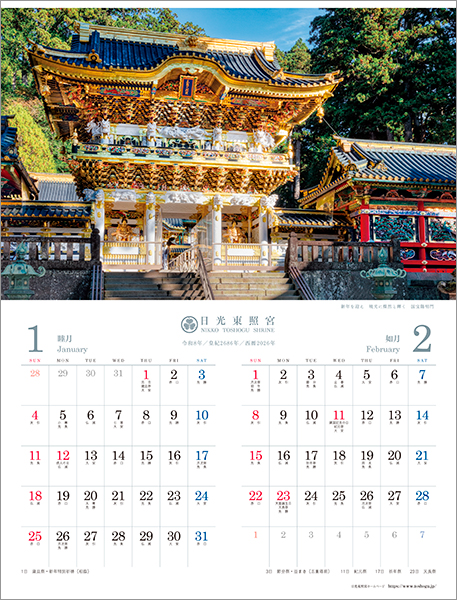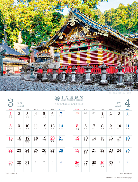 当宮のオリジナルカレンダーでは、四季折々の東照宮の姿をお楽しみいただけます。
